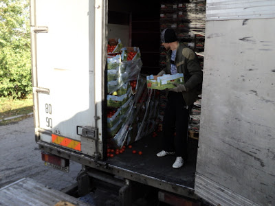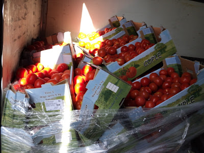 Упавший паллет с польским помидором